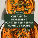 This 5-Ingredient Roasted Red Pepper Hummus is a simple, flavorful twist on classic hummus, perfect for snacking or entertaining. Roasting the peppers adds a smoky sweetness that pairs beautifully with creamy chickpeas and tahini. Ready in under an hour, it’s a delicious dip that everyone will love.