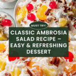 Ambrosia Salad is a classic, sweet fruit salad that’s both refreshing and creamy. Packed with citrus, pineapple, marshmallows, and nuts, it’s a perfect side dish or dessert for gatherings.
