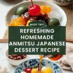 Anmitsu is a classic Japanese dessert featuring refreshing kanten jelly, sweet shiratama dango, azuki bean paste, and fresh fruits, all brought together with a drizzle of kuromitsu syrup. This light and colorful treat is perfect for warm days or any time you want a delightful, traditional sweet.