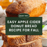 Keywords: apple cider donut bread, autumn bread recipe, cinnamon spice bread, quick bread, fall baking, homemade donut bread