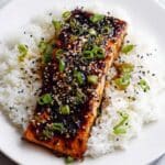 - Finish and Garnish: After baking, brush the reserved ¼ cup of teriyaki sauce over the salmon for an extra burst of flavor. Garnish with thinly sliced green onions and a sprinkle of sesame seeds. Serve immediately, ideally alongside steamed rice.