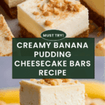 Keywords: banana pudding cheesecake bars, banana cheesecake bars, banana pudding dessert, cheesecake bars, no-bake cheesecake, banana blondie bars