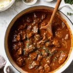 Store leftovers in an airtight container in the refrigerator for up to 3 days. Reheat gently on the stovetop with a splash of beef broth to loosen the sauce if needed. This dish can also be frozen for up to 2 months; thaw overnight in the refrigerator before reheating.