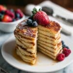 Store leftover pancakes in an airtight container in the refrigerator for up to 3 days. Reheat gently in a skillet over low heat or in the microwave for 20–30 seconds. You can also freeze pancakes separated by parchment paper for up to 1 month and toast or reheat as needed.