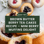 These Brown Butter Berry Tea Cakes are delicate and moist mini cakes bursting with fresh berries, enriched with the deep, nutty flavor of homemade browned butter. Perfectly tender with a hint of lemon zest and vanilla, these tea cakes make a delightful snack or elegant dessert that’s quick to prepare and bake.