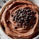 - Serve and Garnish: Transfer the brownie batter dip to a serving dish. Evenly sprinkle the remaining mini chocolate chips on top for an attractive finish. Serve with your favorite dippers such as graham crackers, pretzels, or fruit, and enjoy.