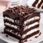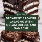 Keywords: Brownie lasagna, layered dessert, cream cheese, chocolate ganache, easy brownies, no-bake dessert