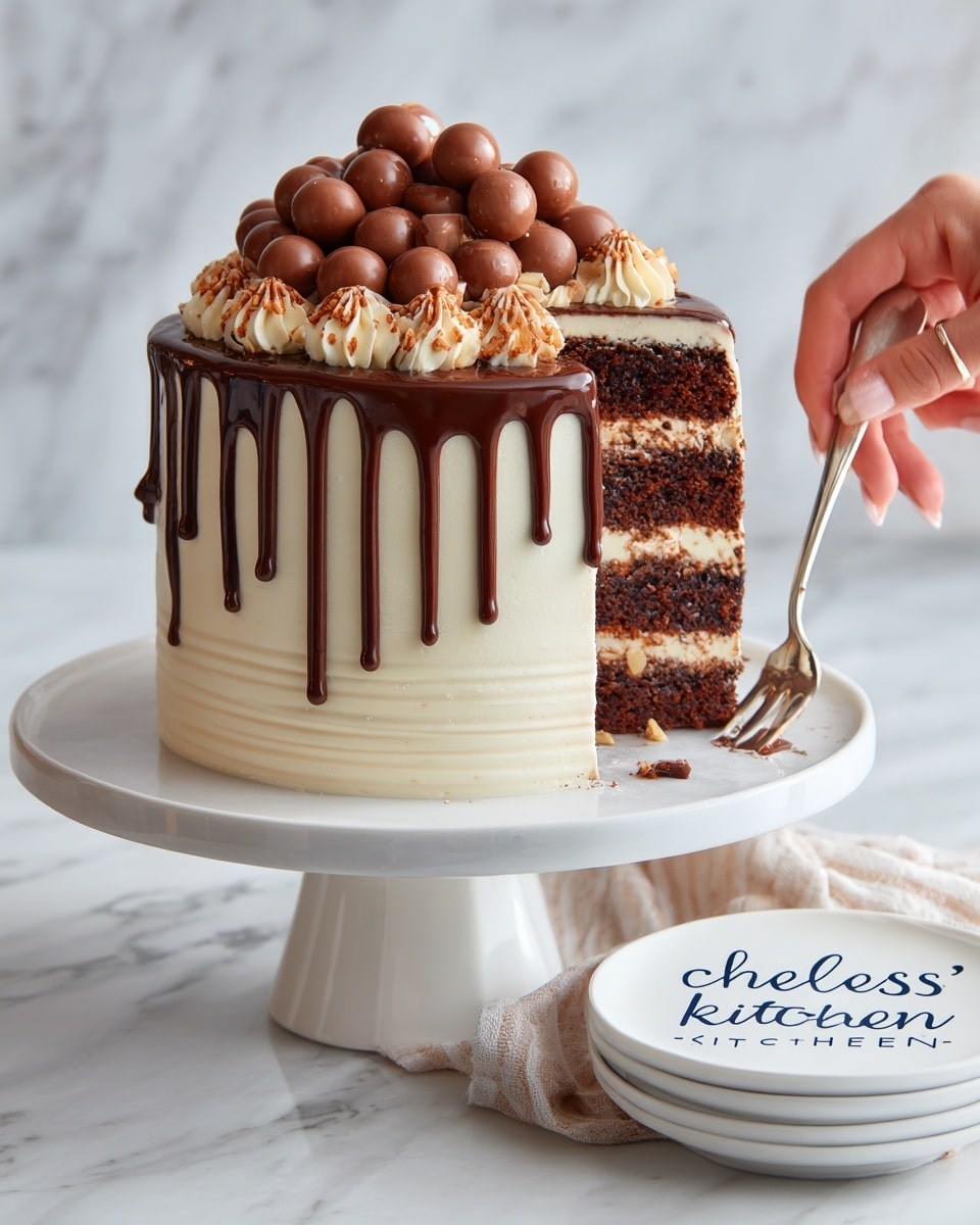 Buckeye Cake is a rich and decadent chocolate cake layered with creamy peanut butter buttercream and topped with a silky chocolate ganache drip. This dessert perfectly balances chocolate and peanut butter flavors, making it a showstopper for any occasion.