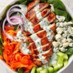 - Serve: Top the salad with sliced buffalo chicken strips. Drizzle the creamy herb dressing over the top just before serving for the best flavor and texture.