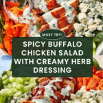 This vibrant Buffalo Chicken Salad combines spicy buffalo-marinated chicken breast with crisp romaine, baby spinach, fresh vegetables, and a creamy herb dressing. It’s a flavorful, protein-packed salad perfect for a satisfying lunch or dinner, balancing heat, tanginess, and freshness.