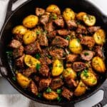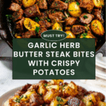 Keywords: steak bites, garlic herb potatoes, butter steak, skillet steak, easy dinner, one pan meal