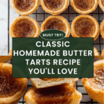 Store butter tarts in an airtight container in the refrigerator for up to 4 days. To reheat, warm them gently in the oven at 300°F (150°C) for 5–10 minutes or enjoy them cold, depending on your preference.