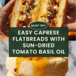 Delicious Caprese Flatbreads filled with a flavorful mixture of sun-dried tomatoes, fresh basil, feta, cream cheese, and mozzarella, cooked on the stovetop until golden and fluffy. These flatbreads are perfect for a quick snack or light meal, served with a fragrant sun-dried tomato basil oil for an extra burst of flavor.
