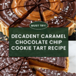 Keywords: caramel chocolate chip cookie tart, chocolate ganache tart, cookie tart dessert, caramel chocolate dessert, chocolate chip cookie recipe