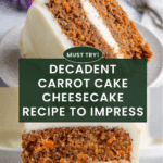 Keywords: carrot cake cheesecake, layered cake, cream cheese frosting, spiced carrot cake, baked cheesecake, dessert recipe
