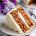 12. Add and Frost Remaining Layers: Cover the cheesecake with another layer of frosting; top with the second carrot cake layer. Spread remaining frosting smoothly over the entire cake.