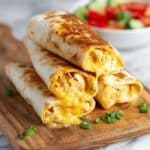 These Cheesy Garlic Chicken Wraps are a quick and delicious meal perfect for lunch or dinner. Featuring tender cooked chicken mixed with garlic, creamy mayonnaise and Greek yogurt, a hint of hot sauce, and plenty of melted cheddar cheese, all wrapped in a warm tortilla and pan-fried to golden perfection. They’re flavorful, satisfying, and easy to prepare using simple ingredients and a stovetop skillet.