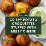 Deliciously crispy Potato Croquettes stuffed with melted smoked gouda and sharp cheddar cheese, seasoned with smoked paprika and chipotle powder, and served with a vibrant roasted hatch chili dipping sauce. These golden croquettes are perfect as a savory appetizer or a comforting side dish.