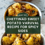 Chettinad Sweet Potato Varuval is a flavorful South Indian dry fry dish featuring tender sweet potatoes coated in a spicy, aromatic roasted masala powder. Perfect as a side with steamed rice, this recipe brings a delightful blend of textures and vibrant spices to your meal.