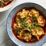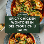 These Chicken Wontons in Spicy Chili Sauce offer a deliciously savory and spicy twist on a classic appetizer. Tender wontons are simmered in a flavorful broth infused with teriyaki sauce and garlic, then finished with chili crisp, sesame oil, and fresh green onions and sesame seeds for a perfect balance of heat, umami, and crunch.