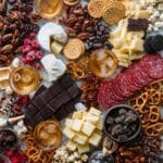 This Chocolate and Bourbon Cheeseboard is a delightful mix of savory, sweet, and boozy flavors that’s perfect for entertaining or cozy nights in. Combining a variety of cheeses with rich chocolates, crunchy nuts, and luscious bourbon, it offers something for every palate to enjoy.