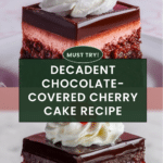 This decadent Chocolate-Covered Cherry Cake combines rich chocolate layers with a luscious cherry buttercream and a smooth chocolate ganache topping. Perfectly moist and flavored with a burst of cherry concentrate, this delightful dessert is garnished with fresh or maraschino cherries and optional whipped cream, making it an irresistible treat for chocolate and cherry lovers alike.