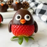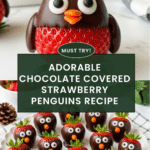 Chocolate Covered Strawberry Penguins are a fun and adorable treat made by dipping fresh strawberries in melted chocolate and decorating them with candy eyeballs and orange sprinkles to resemble penguins. Perfect for parties, holidays, or a delightful snack that combines fresh fruit with sweet chocolate.