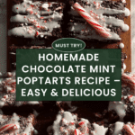 This homemade Chocolate Pastry Poptarts recipe features a rich cocoa-flavored dough filled with a creamy mint dark chocolate filling, all topped with a sweet powdered sugar glaze and crushed candy cane for a delightful treat. Perfectly baked to a golden finish, these poptarts are a delicious twist on a classic breakfast pastry with a refreshing minty chocolate surprise inside.