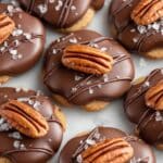 - Top with Chocolate: Spoon about 1½ teaspoons of the melted chocolate over each caramel-coated pecan cluster. Allow the clusters to cool at room temperature or chill briefly to help the chocolate set.