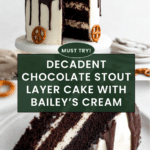 This Chocolate Stout Layer Cake is a rich, moist dessert combining the deep flavors of dark cocoa and Guinness stout beer. Topped with a smooth Bailey’s Irish Cream buttercream and a luscious chocolate ganache drip, it’s perfect for celebrations or any time you want an impressive homemade treat.
