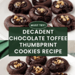These Chocolate Toffee Thumbprint cookies combine rich cocoa and buttery toffee bits for a delightful treat. Filled with a smooth chocolate ganache, they are perfect for sharing or enjoying with a cup of coffee.