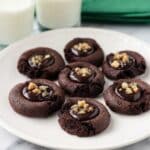 - Fill Cookies: Spoon or pipe the chocolate filling into each cooled cookie thumbprint well. Allow the filling to set at room temperature before serving.