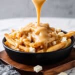 Store leftover gravy in an airtight container in the refrigerator for up to 5 days. Reheat gently on the stove, whisking occasionally to restore its smooth texture. For best results, make fries fresh when serving again, as they can become soggy after refrigeration.