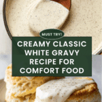 This Classic White Gravy recipe is a smooth, creamy, and savory sauce made with a simple roux of butter and flour, slowly combined with milk and seasoned with kosher salt and black pepper. Perfect for pouring over biscuits, mashed potatoes, or fried chicken, this easy-to-make gravy elevates any comfort food meal.
