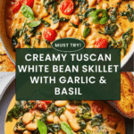 This Creamy Tuscan White Bean Skillet brings together hearty beans, fresh spinach, and juicy tomatoes in a rich, flavorful sauce. Ready in under 30 minutes, it’s a comforting dish perfect for a simple weeknight dinner or a casual gathering.