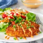 Crispy Buffalo Chicken is a flavorful twist on a classic favorite, featuring tender chicken breasts coated in a spicy, crunchy panko crust. Baked until golden and topped with a tangy buffalo ranch drizzle, this dish is perfect for an easy weeknight dinner or game day treat.