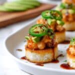 Crispy Rice with Spicy Tuna is a delectable Japanese-inspired appetizer featuring perfectly cooked sushi rice formed into crispy fried cakes topped with a creamy, spicy ahi tuna mixture, fresh avocado, and a tangy homemade eel sauce. This dish balances textures and flavors for an impressive and delicious bite-sized treat.