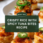 Crispy Rice with Spicy Tuna is a delightful fusion dish combining crunchy, golden rice cakes with a creamy and spicy tuna topping. Perfect as an appetizer or a fun snack, it balances texture and flavor with every bite.