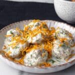 This Crispy Smashed Potato Chaat Salad is a vibrant, flavorful Indian-inspired dish featuring crispy oven-roasted smashed baby potatoes tossed in a zesty, creamy yogurt-tahini dressing. Enhanced with chaat masala and fresh cilantro, and topped with crunchy sev and optional pomegranate seeds, it makes a perfect snack or side dish with delightful textures and bold spices.