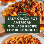 This Crock Pot American Goulash is a comforting, easy-to-make one-pot meal filled with tender ground beef, vibrant vegetables, tangy tomato sauces, and perfectly cooked elbow macaroni. Slow-cooked to meld flavors beautifully, it’s perfect for a hearty family dinner with minimal hands-on time.