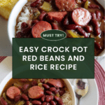 Keywords: red beans and rice, crock pot recipes, slow cooker dinner, Cajun food, smoked sausage, comfort food