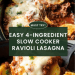 This Easy 4-Ingredient Slow Cooker Ravioli Lasagna is a delicious and effortless meal combining ground beef, pasta sauce, cheesy ravioli, and melted mozzarella. Prepared in a slow cooker, it layers flavorful meat sauce with cheesy ravioli for a comforting, hands-off dinner perfect for busy days or cozy nights.
