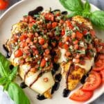 Keywords: bruschetta chicken, grilled chicken recipe, mozzarella chicken, easy chicken recipes, Italian chicken, balsamic glaze chicken