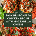 Easy Bruschetta Chicken is a flavorful and fresh twist on a classic Italian favorite. Juicy grilled chicken breasts are topped with a vibrant tomato basil mixture and melted mozzarella, making it a perfect weeknight dinner that feels special.