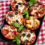 These easy homemade mini pizza bagels are a fun and quick snack or meal perfect for any time of day. With a simple tomato sauce, gooey melted cheese, and your favorite toppings, they satisfy pizza cravings in a flash.
