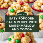 Easy Popcorn Balls are a fun and festive treat, perfect for holiday gatherings or anytime you want a sweet, crunchy snack. This recipe combines buttery popcorn with gooey melted marshmallows and optional additions like hot cocoa powder and colorful sprinkles for a delightful twist. The popcorn balls are simple to make, shaped easily, and stored conveniently in cupcake liners or wrapped in plastic.