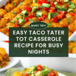 This Easy Taco Tater Tot Casserole is a hearty, flavorful dish perfect for busy weeknights. Combining classic taco ingredients with crispy tater tots, it’s both comforting and fun to eat. You’ll love how quickly it comes together and the crowd-pleasing taste.