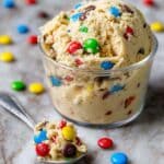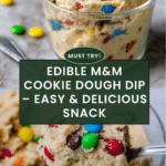 A deliciously safe-to-eat edible M&M cookie dough dip made without eggs, perfect for dipping or eating by the spoonful. This creamy, sweet treat combines the classic cookie dough flavors with colorful mini M&Ms, offering a fun and crowd-pleasing dessert that requires no baking.