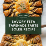 The Feta Tapenade Tarte Soleil is a stunning and flavorful appetizer perfect for sharing. It combines a savory olive and sundried tomato filling inside flaky puff pastry, baked to golden perfection and served with a creamy whipped feta dip. This impressive yet easy-to-make tart is sure to brighten up any gathering.