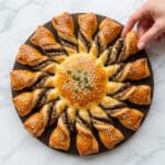 This delightful Feta Tapenade Tarte Soleil is a visually stunning and flavorful savory pastry perfect for entertaining. It features a rich sundried tomato and olive tapenade encased in flaky puff pastry, shaped like a radiant sun with twisted rays. Accompanied by a creamy whipped feta dip with lemon and herbs, this impressive tart combines Mediterranean flavors with elegant presentation, making it an ideal appetizer or party dish.